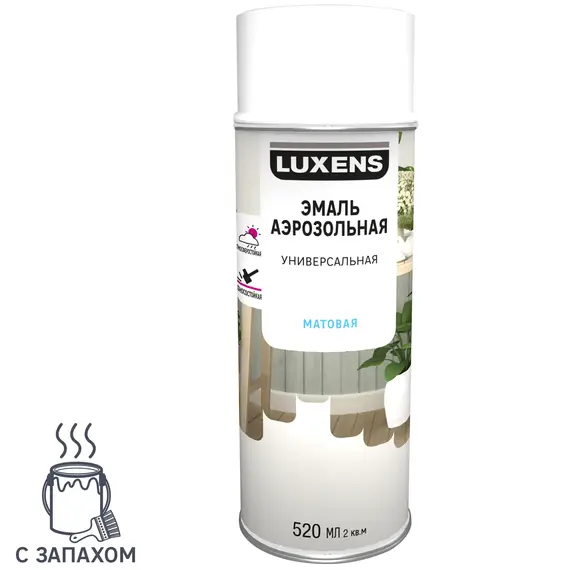 Аэрозольная эмаль Luxens универсальная идеально подходит для окрашивания и обновления любых поверхностей. Благодаря особому составу ее можно наносить прямо на ржавчину, она устойчива к ударам, царапинам и пожелтению, выдерживает температуру до 80 °C. После нанесения поверхность легко очищается, ее можно мыть. Объем баллона — 520 мл, этого хватит для окрашивания 2 м² поверхности. Эмаль неподтекающая, время высыхания между двумя слоями — 15 минут, полностью высыхает за сутки. Цвет — белый, матовый.