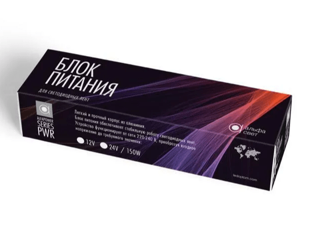 Блок питания для светодиодной ленты предназначен для корректного питания светодиодных лент, так же он обеспечивает защиту от перегрузки и короткого замыкания. Блок питания выбирается, исходя из общей мощности светодиодной ленты + 35% запаса.