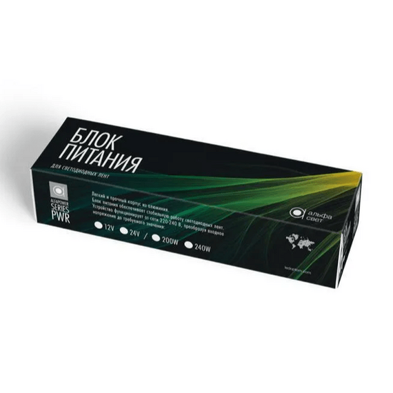 Блоки питания для светодиодных лент предназначены для корректного питания светодиодных лент, так же они обеспечивают защиту от перегрузки и короткого замыкания. Блок питания выбирается, исходя из общей мощности светодиодной ленты + 10% запаса. Компактный блок питания мощностью 240 W.