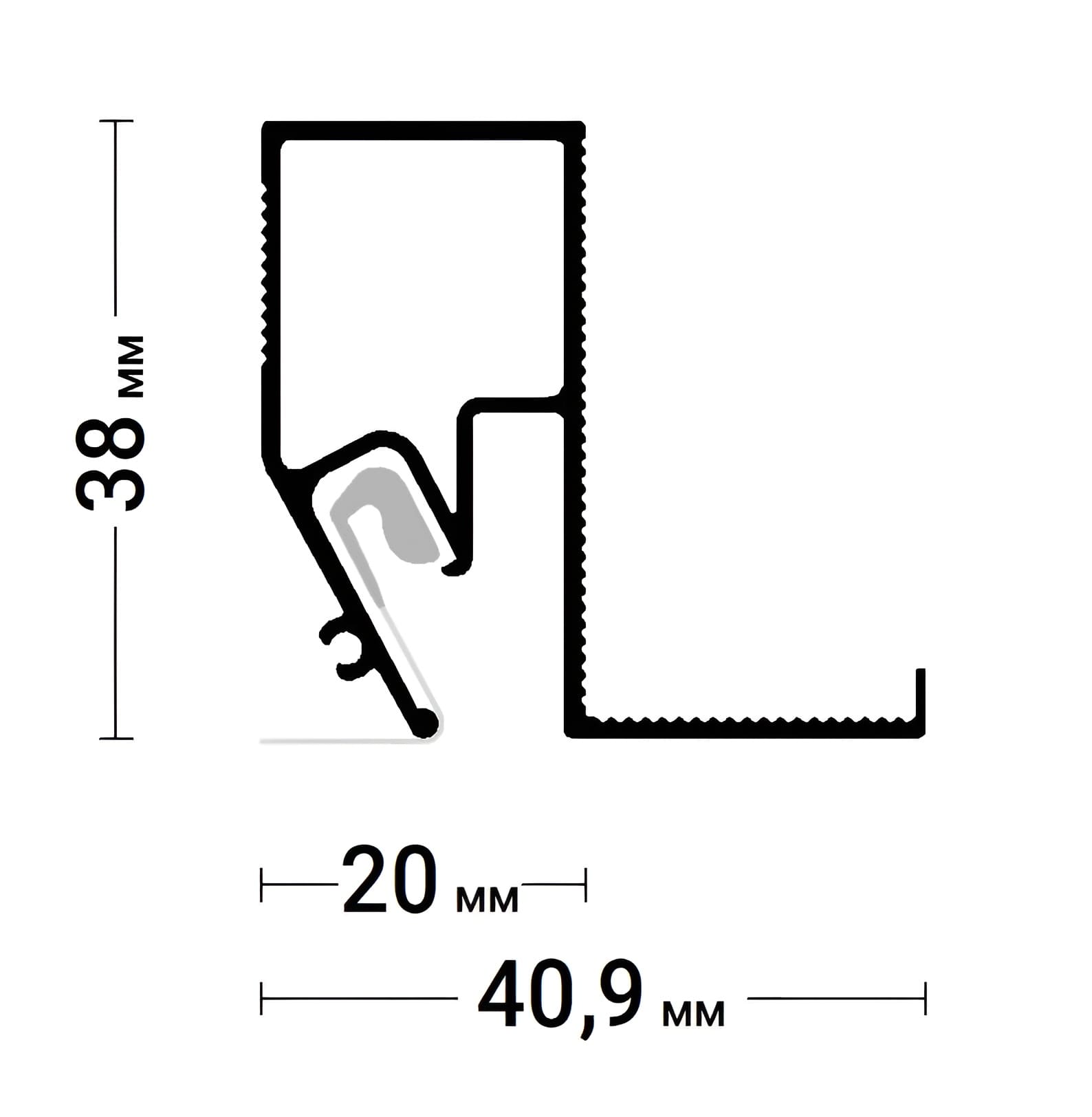 Профиль Flexy BRUS 06 для натяжных потолков с гарпунной системой крепления полотна используется для обхода лестничных проемов и мансардных окон.