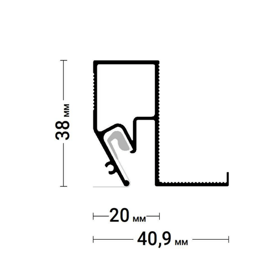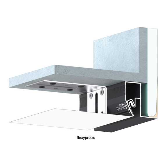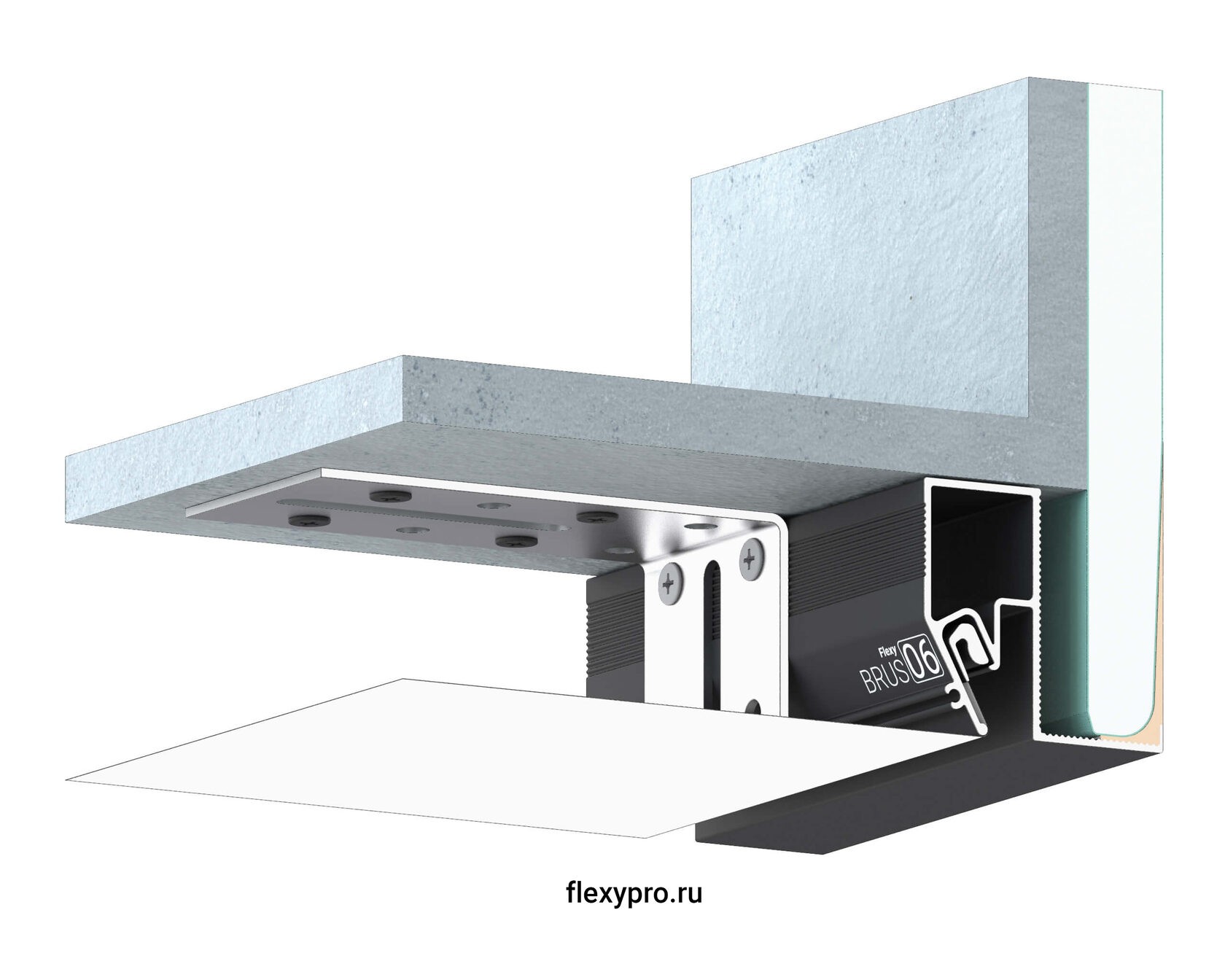 Теневой профиль Flexy BRUS 06 для натяжных потолков с гарпунной системой крепления полотна. Для обхода лестничных проемов и мансардных окон.