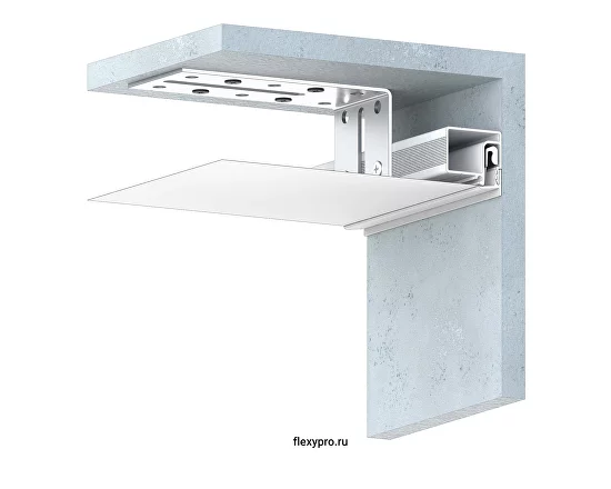 Профиль Flexy (ПФ 8673) BRUS 05 для натяжных потолков с гарпунной системой крепления полотна. Для обхода сложных стен. По периметру профиль закрывается стеновой вставкой.