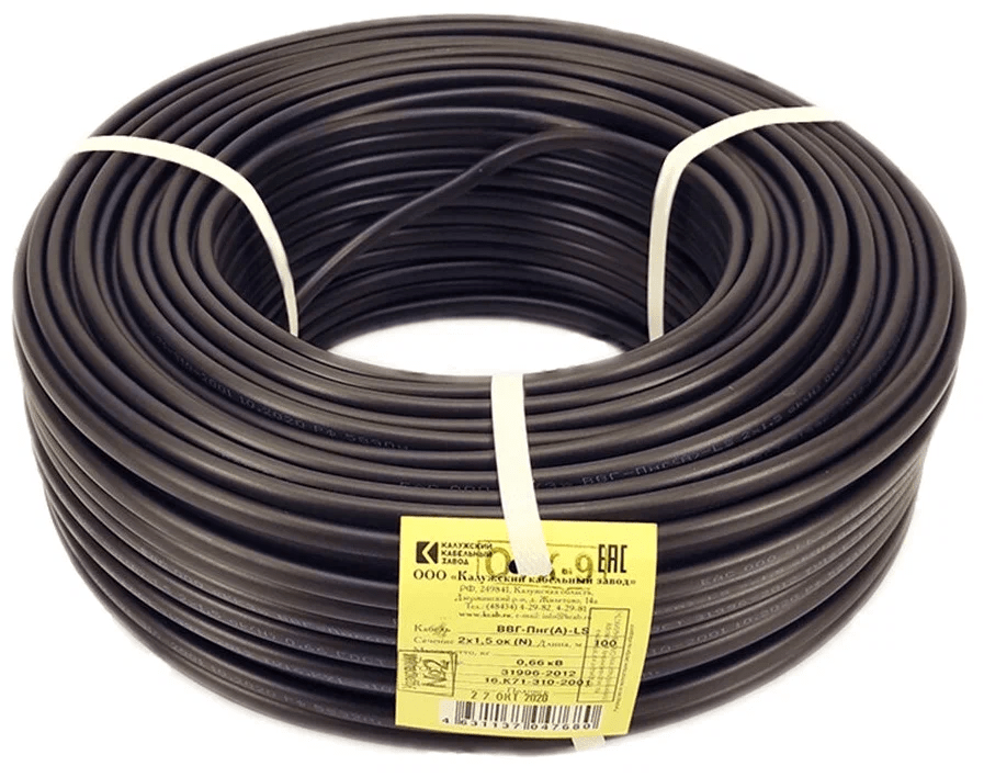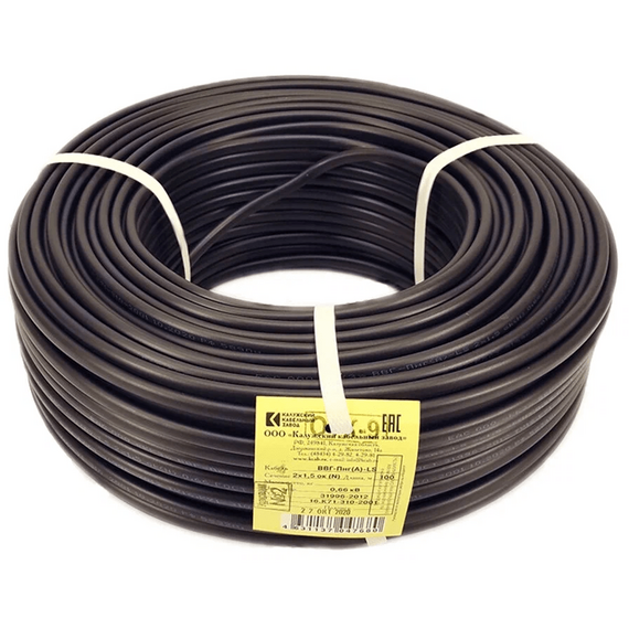 Провод ВВГ 2*1,5 — это силовой кабель с двумя медными жилами сечением 1,5 мм² и изоляцией и оболочкой из ПВХ. Он предназначен для передачи и распределения электроэнергии в неподвижных электротехнических установках с номинальным переменным напряжением до 1000 В и частотой 50 Гц.