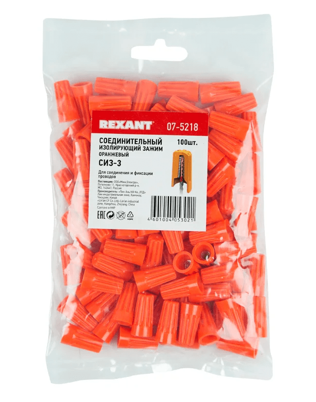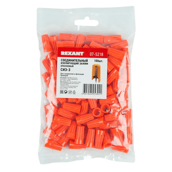 СИЗ-3 оранжевого цвета (100 штук) — это соединительный изолирующий зажим, предназначенный для соединения и изоляции медных проводов. Он обеспечивает надёжное соединение и изоляцию проводов, а также позволяет многократно использовать узел без повреждения целостности проводов. В комплекте 100 штук.
