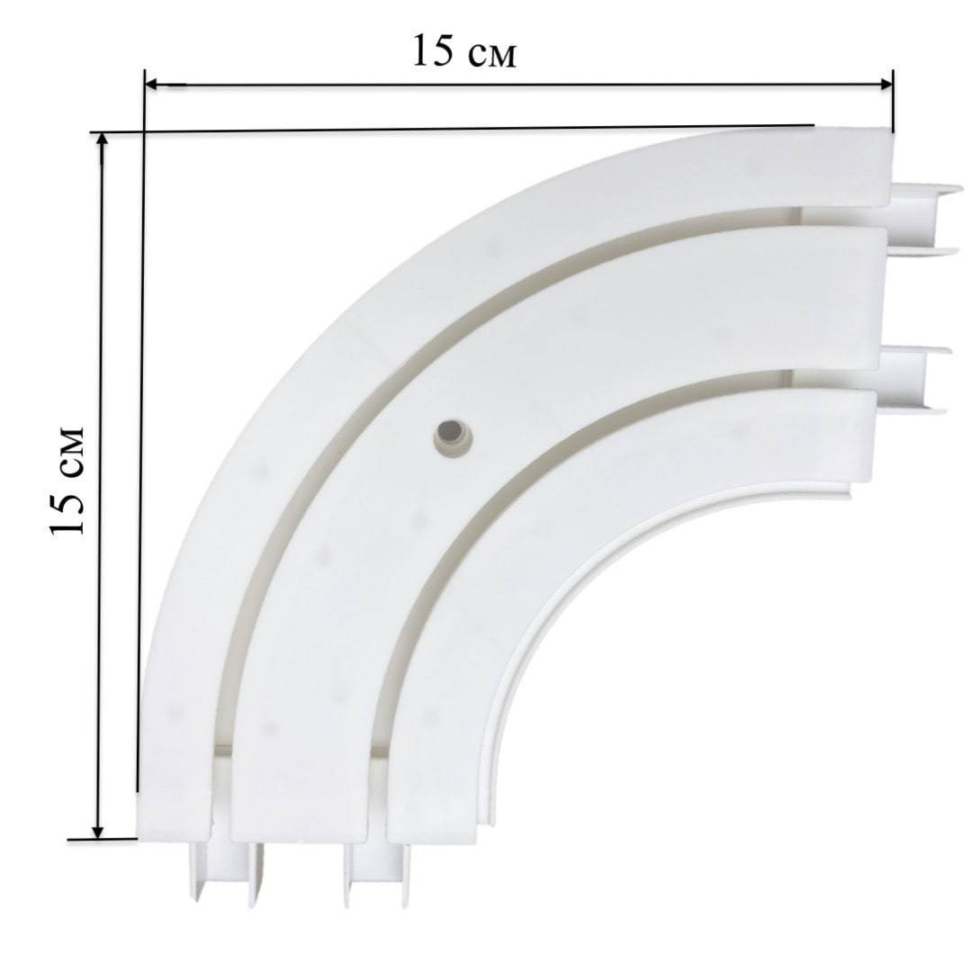 Пластиковый двухрядный поворот для потолочной пластиковой шины предназначен для эркерных окон.