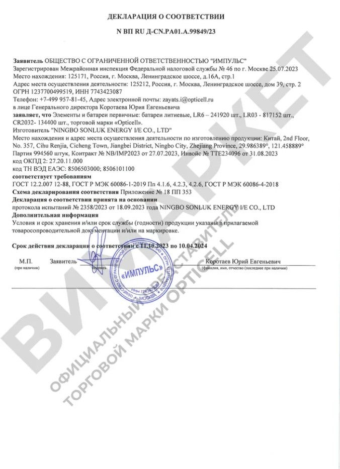 Батарейки Opticell АА, пальчиковые SIMPLY, LR6, 2 шт./уп.