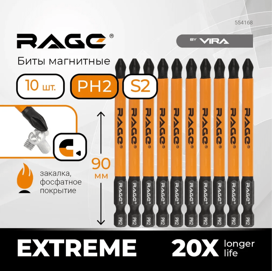 Бита Магнитная S2 PH2 х 90мм. RAGE by VIRA (1 шт.)