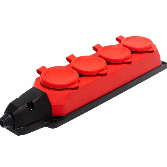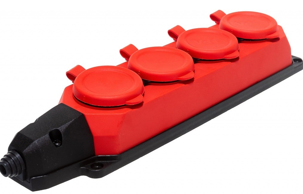 Колодка каучуковая с заземлением 4 розетки 16А IP44 красная