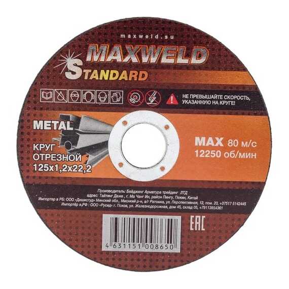Круг отрезной по металлу, 125*1,0*22,2мм MAXWELD