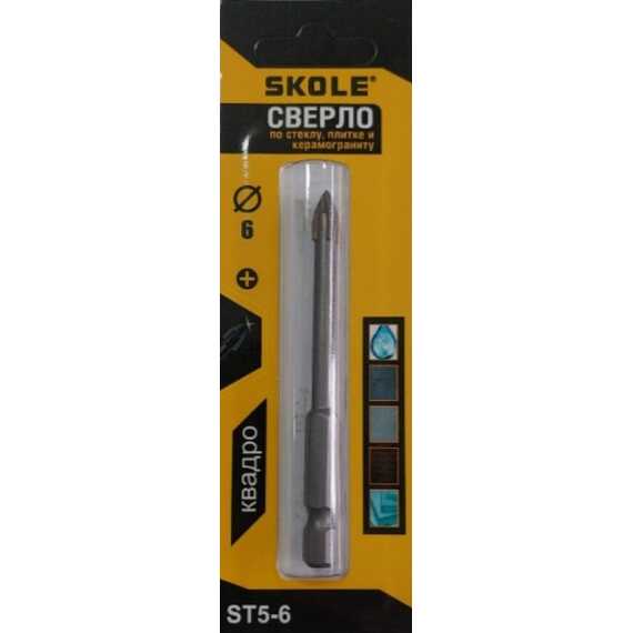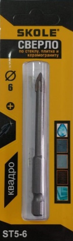 Сверло по керамике и стеклу 6,0мм 4 грани Skole