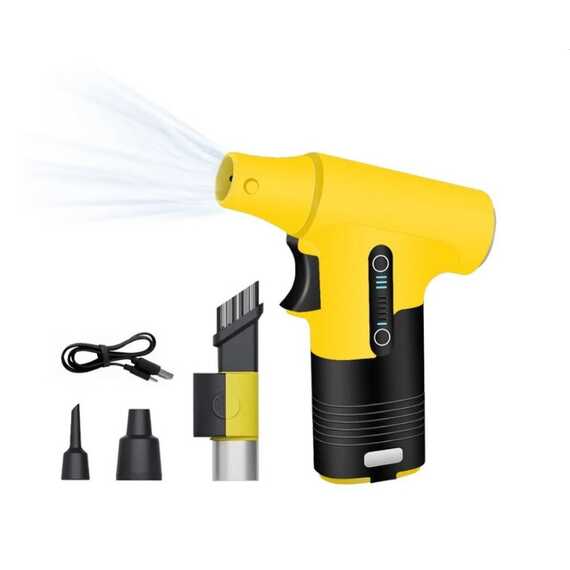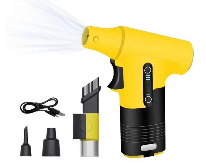 Этот портативный беспроводной вентилятор оснащен высокоскоростным бесщеточным турбодвигателем, скорость которого может достигать 130 000 об/мин, обеспечивая сильную скорость ветра до 55 м/с.