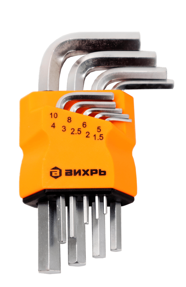 Набор ключей имбусовых Вихрь HEX - удобное приспособление для закручивания и выкручивания резьбовых соединений.