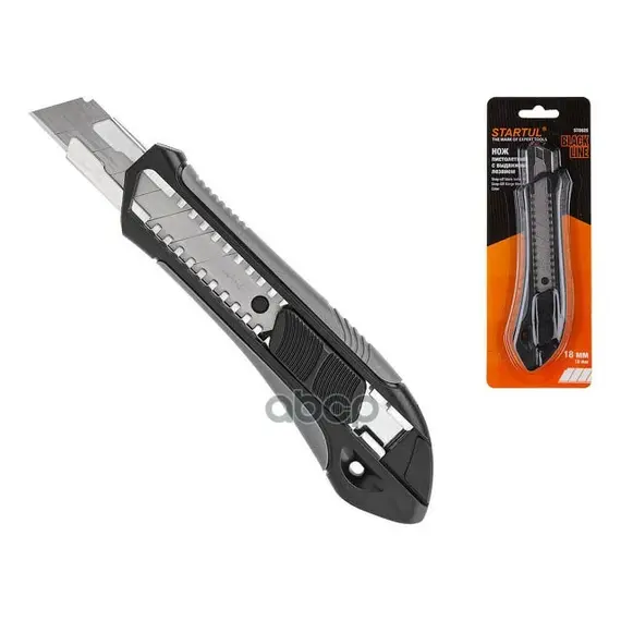 Пистолетный нож с металлическим корпусом и шириной лезвия 18 мм — универсальный инструмент для точных и аккуратных резов.