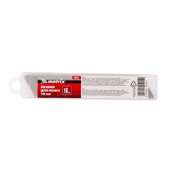 Лезвия шириной 18 мм и длиной 109 мм - запасные части к монтажным ножам соответствующего типоразмера. Ими можно резать твердые материалы, линолеум, пластик, гипсокартон, а также бумагу, пленку, картон. Лезвия используются при проведении строительных и отделочных работ, а также применяются в хозяйственных целях.