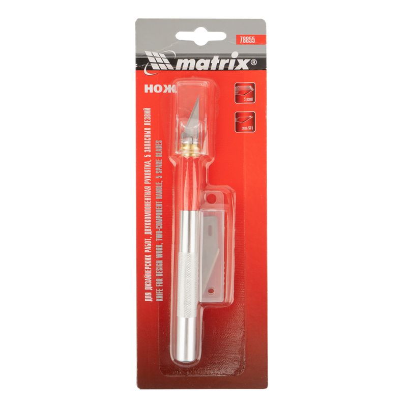 Нож для дизайнерских работ, двухкомпонентная рукоятка, 5 запасных лезвий// Matrix 78855