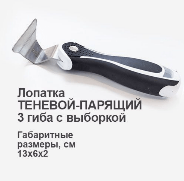 Лопатка три гиба, для работы с теневыми и парящими профилями. Выборка на рабочем крае облегчает работа с гарпуном.
