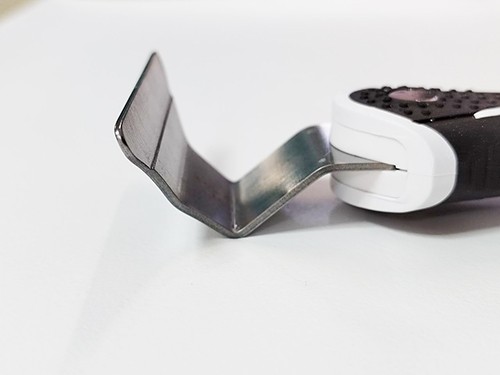 Эргономично лежит в руке. Изгиб металлической части спроектирован так, чтобы удобно было заправить потолок не повредив обои и потолок.