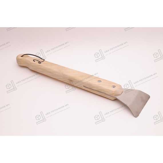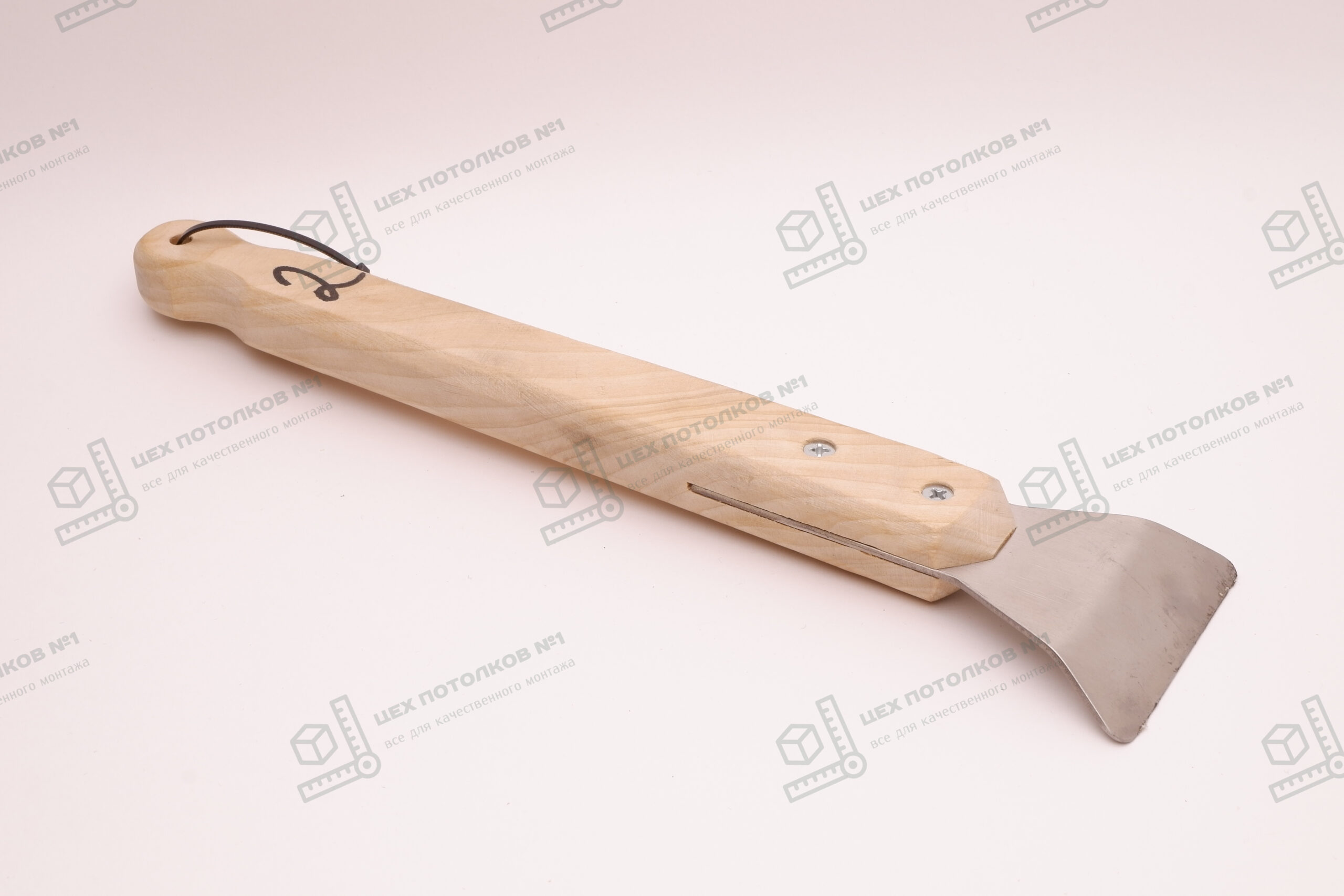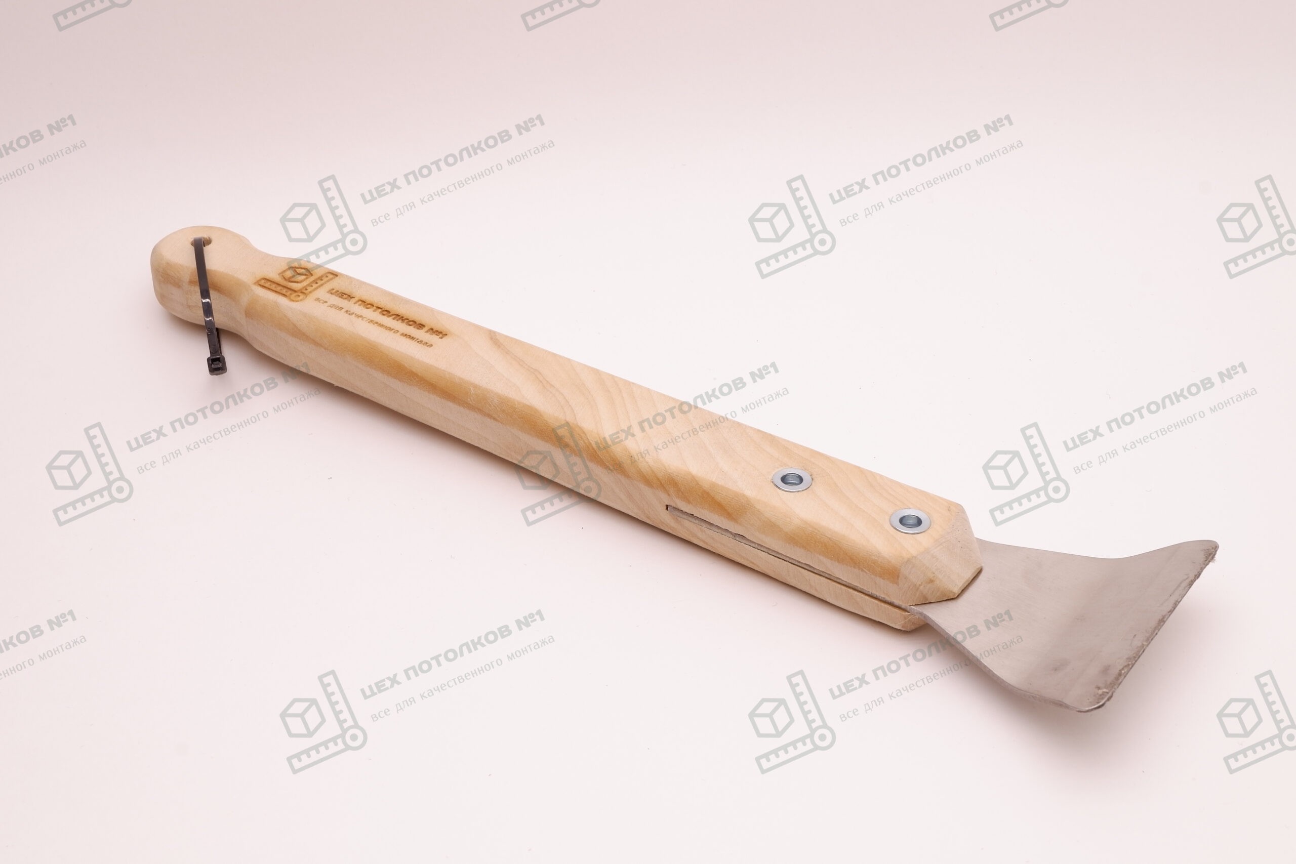 Гиб лопатки составляет 30°, что обеспечивает оптимальное сочетание удобства и точности при работе с различными типами профилей. Этот инструмент идеально подходит для профессиональных мастеров, занимающихся установкой натяжных потолков, а также для тех, кто хочет выполнить эту работу самостоятельно.