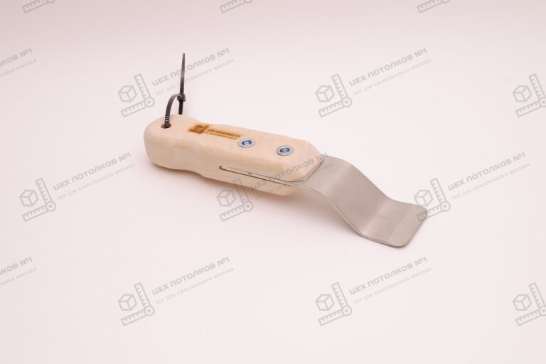 Гиб лопатки составляет 45°, что обеспечивает оптимальное сочетание удобства и точности при работе в труднодоступных местах. Этот инструмент идеально подходит для профессиональных мастеров, занимающихся установкой натяжных потолков, а также для тех, кто хочет выполнить эту работу самостоятельно.
