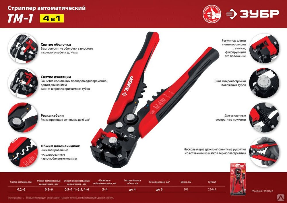Стриппер ЗУБР ТМ-1, 0,2 - 6 мм. Автоматический Многофункциональный