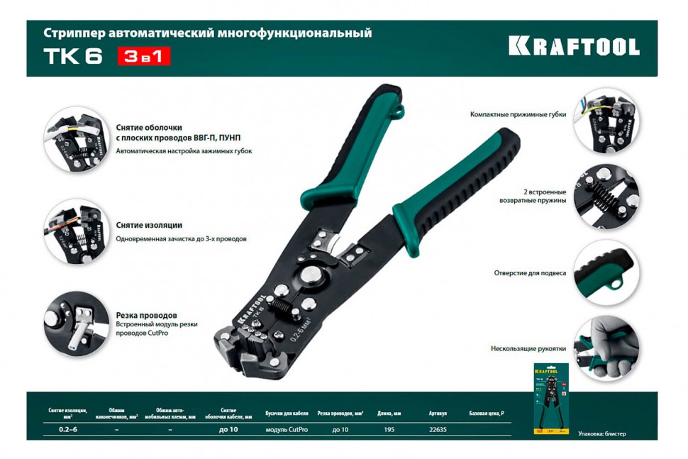 TK-6 стриппер автоматический многофункциональный, 0.2 - 6 мм2, KRAFTOOL (для зачистки проводов)