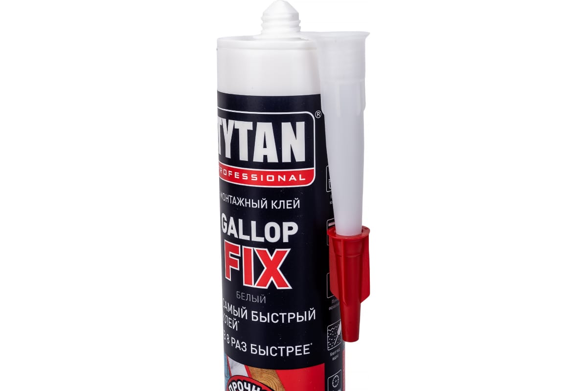 Клей-герметик TYTAN PROFESSIONAL GALLOP FIX полимерный, белый 290 мл 63007 обеспечивает надежное и прочное соединение поверхностей.