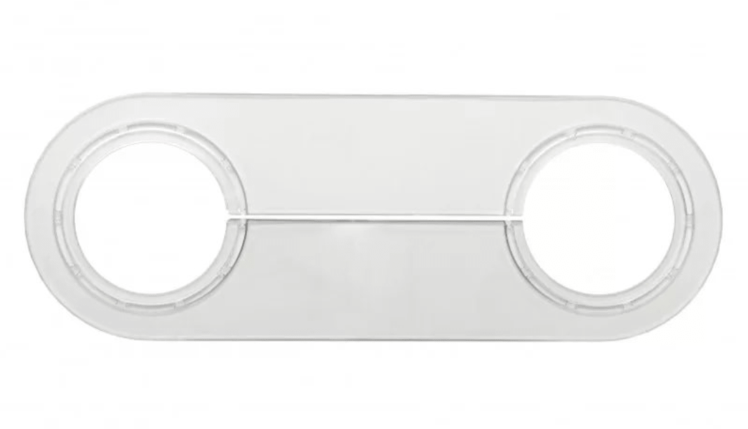 "Усиленная" пластина используется для армирования (ощущения) отверстий, вырезов или разрезов в пленке потолка в местах обхода труб. В отличие от обыкновенной пластины, она шире и длиннее, это позволяет использовать ее при монтаже потолков на большой площади. Рекомендуем при использовании обходные трубы диаметром 45-55 мм.