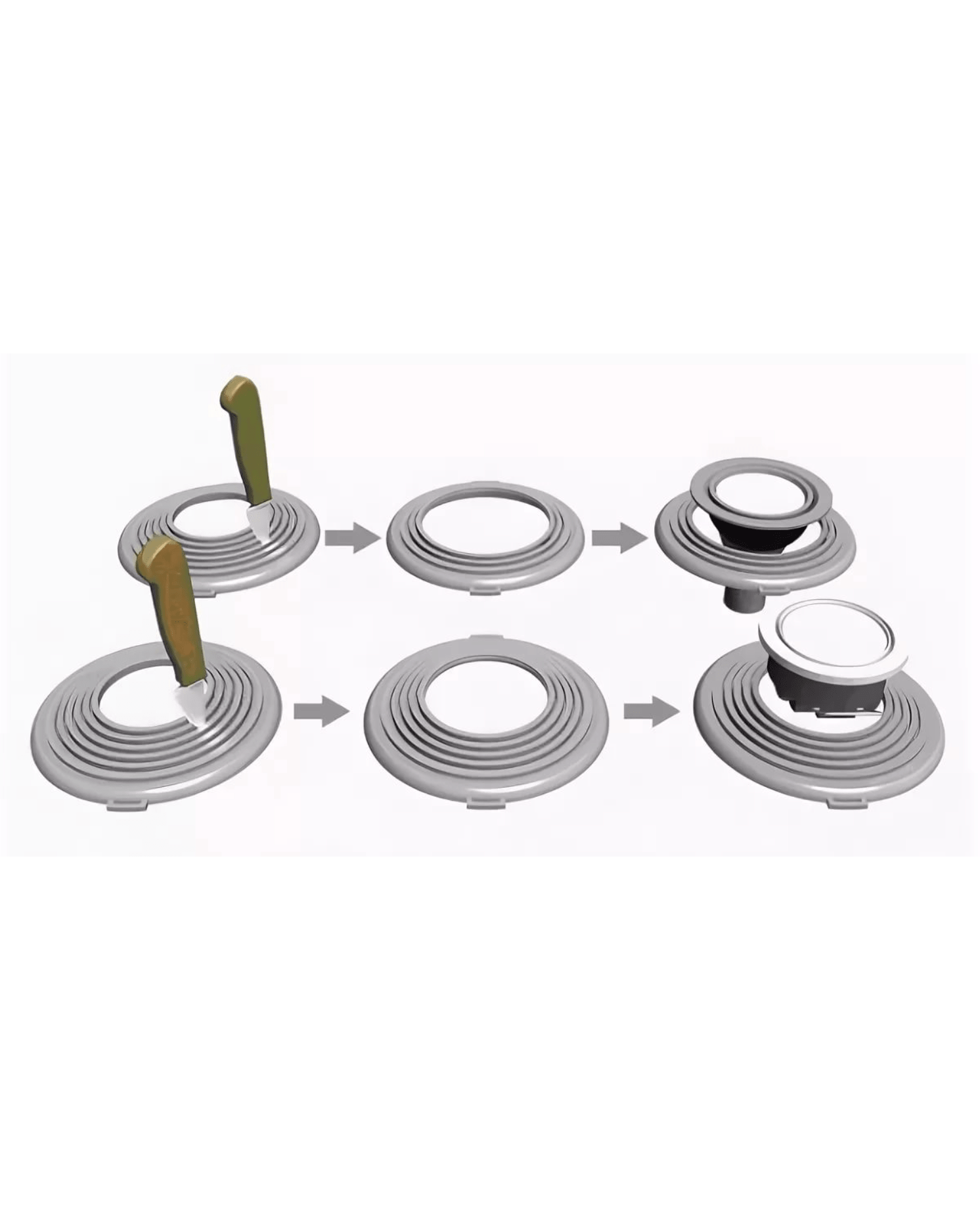 Платформа предназначена для монтажа точечных светильников различных диаметров, потолочных диффузоров, воздуховодов. Благодаря универсальности конструкции, в данную платформу можно установить светильники или другие элементы с посадочным размером от 155 до 205мм. Шаг изменения диаметра 10 мм. При подготовке платформы к установке необходимо выбрать нужный диаметр отверстия и с помощью ножа вырезать его по специальной канавке. Для удобства крепления перфоленты ( подвесов ) на платформе имеются специальные площадки с несквозными отверстиями. Наличие ребер жесткости и специального места для крепления перфоленты обеспечивает надежность конструкции и простоту при установке.