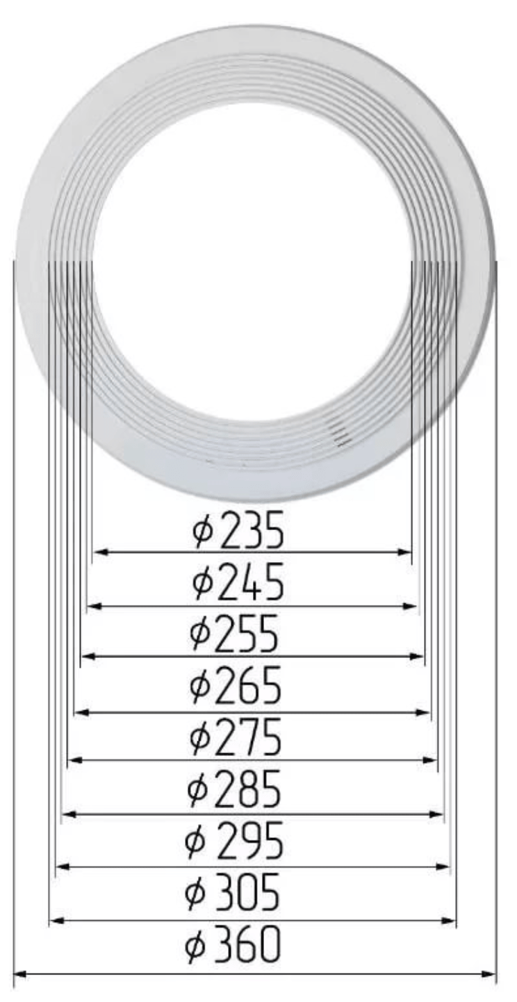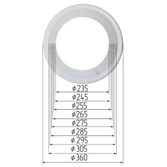 - Размер изделия, мм 360х37 (вн. диаметр 235, 245, 255, 265, 275, 285, 295, 305)