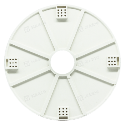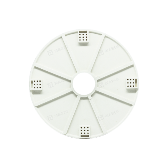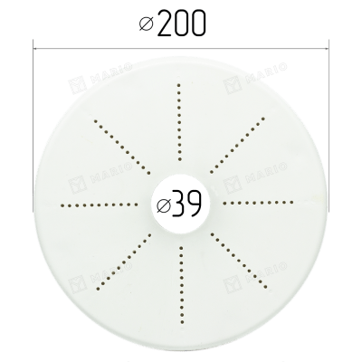 Изготовлена из ПВХ, имеет универсальные отверстия для крепления. Монтаж платформы к основному потолку осуществляется по классической схеме на четыре точки опоры. Для крепления крестовины (планки) люстры на поверхности платформы виде «снежинки» нанесены отверстия под саморезы в 5 мм. Внешний диаметр 200 мм, внутренний – 40 мм. Цвет белый. Крепления платформы к базовому потолку осуществляется при помощи подвесов.