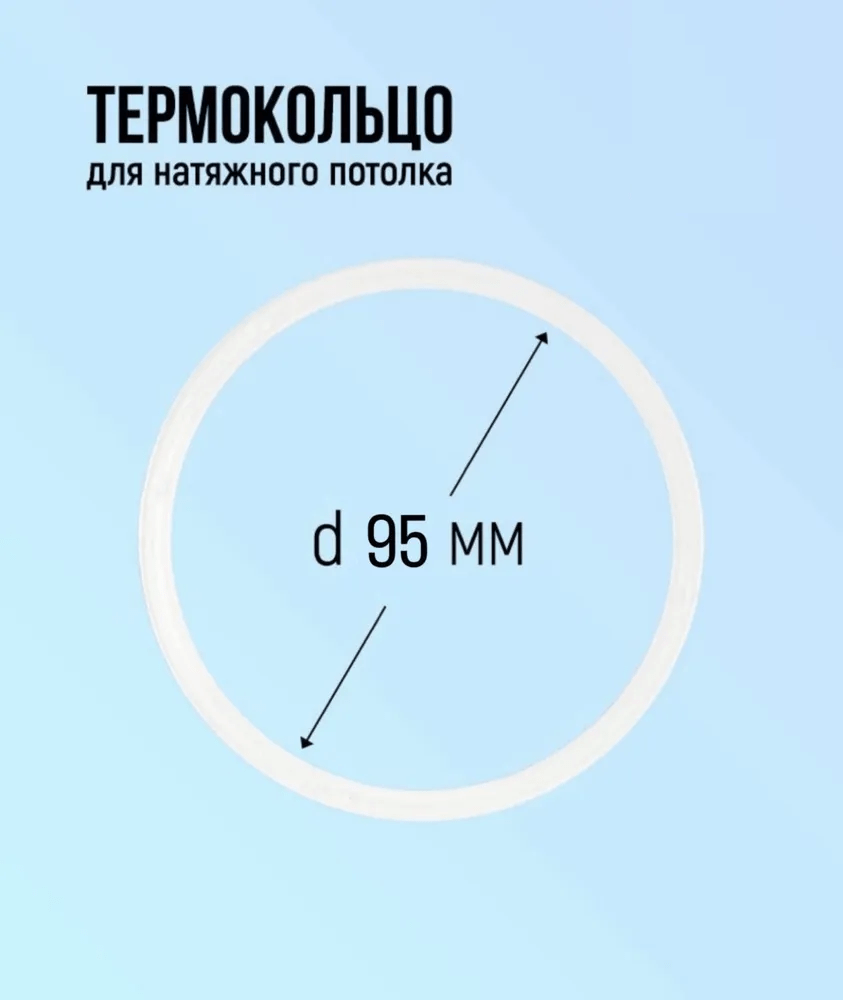 Ультратонкое термокольцо диаметром 95 мм используется для усиления отверстий, вырезов и разрезов в полотне натяжного потолка при монтаже осветительных элементов, элементов вентиляции и других декоративных элементов. Кольцо минимизирует температурное воздействие лампы на плёнку натяжного потолка.