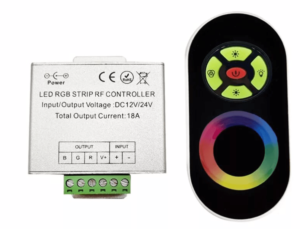 Контроллер предназначен для светодиодной ленты RGB мультицвет. С помощью контроллера можно дистанционно управлять яркостью и цветовой гаммой. Управление осуществляется с помощью пульта дистанционного управления по инфракрасному или радио каналам. Тип управления кнопочный. Диапазон работы пульта 15м.