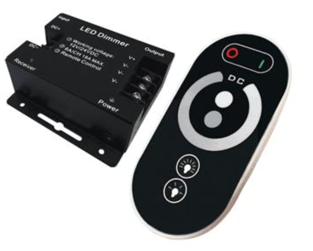 Контроллер диммер одноцветный T3 RF 30A сенсорный ПДУ - предназначен для управления свечением светодиодной ленты с помощью пульта дистанционного управления в радиодиапазоне. Рабочее напряжение - 12-24 вольта, максимальная мощность при токе 30А 720Вт при 24в или 360Вт при 12В. Расстояние до пульта не более 15 метров.