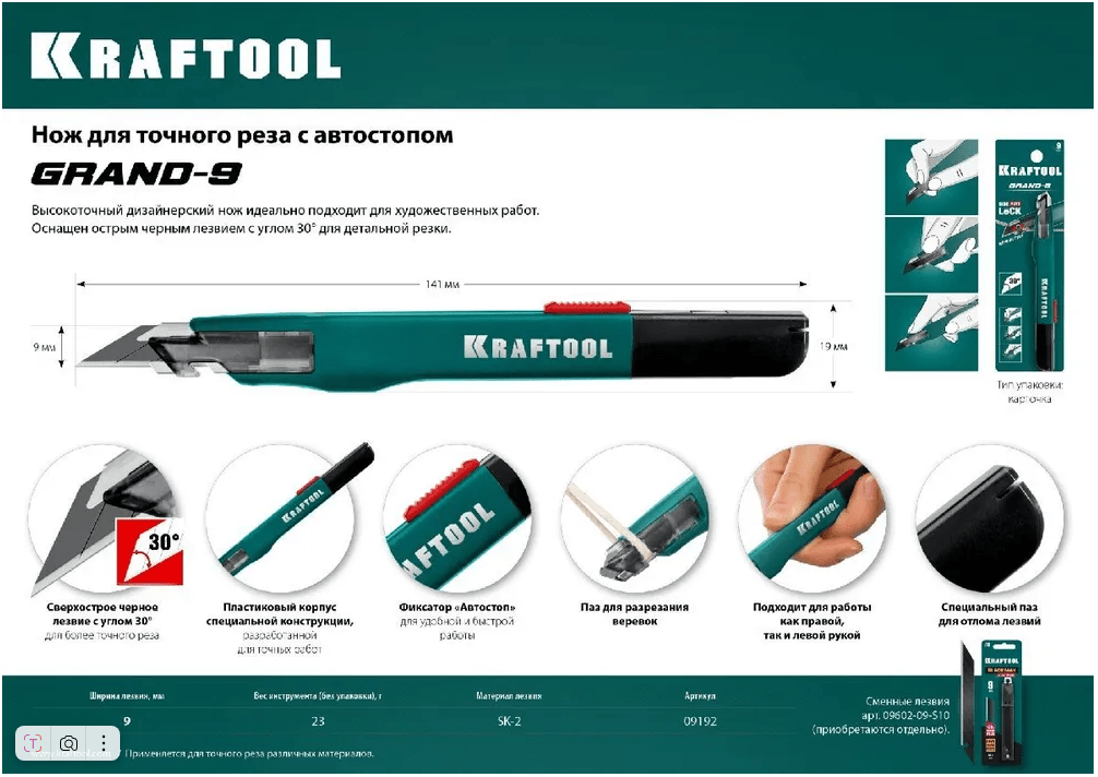 Нож для точного реза KRAFTOOL Grand-9 9 мм 30гр. 09192