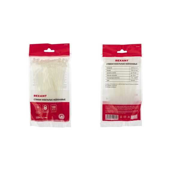 Нейлоновый хомут (кабельная стяжка) 150x3,6мм – простое и экономичное изделие, которое используют для крепления или соединения в жгут проводов, кабелей и любых разновидностей труб. Прочность, эластичность и простота монтажа позволяют использовать их на предприятиях и в быту. Стяжки позволяют соединять детали конструкций, связывать вместе предметы, подвязывать растения и многое другое.