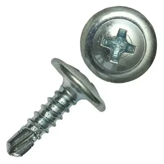 Саморез с прессшайбой и сверловидным наконечником, шляпка самореза выполнена в виде полукруглой головки на которую напрессована плоская шайба.