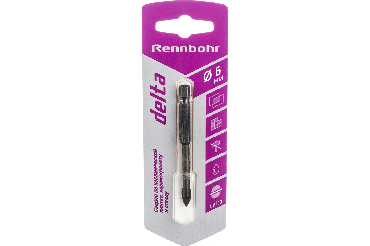 Сверло по керамике Delta 6 мм RENNBOHR 676006 широко применяется для сверления отверстий в кафеле, керамической плитке и стекле.