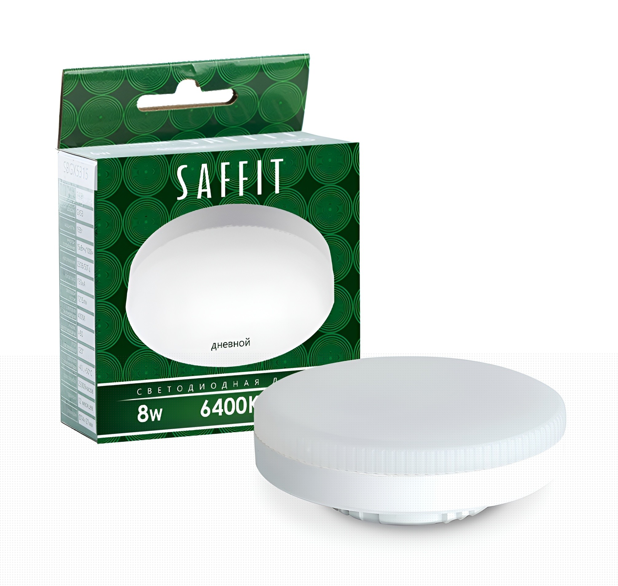 Лампа cветодиодная, (8W) GX53 6400K, SAFFIT SBGX5308