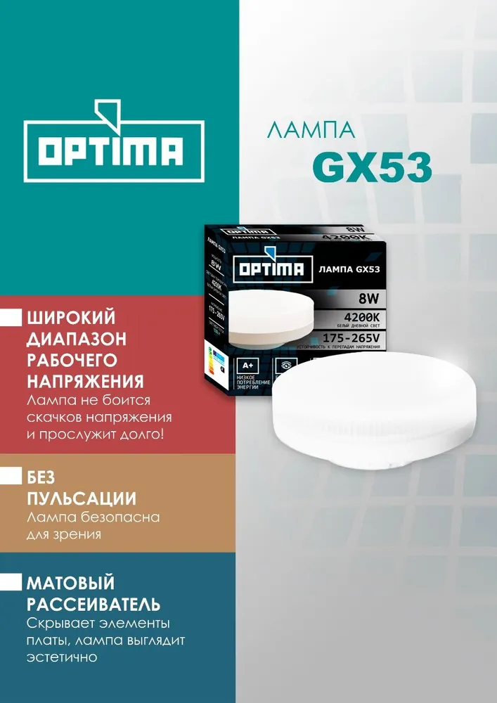 Лампа OPTIMA GX 53 (IP40.10W.3000K.Теплый.900lm)
