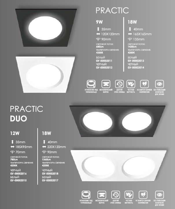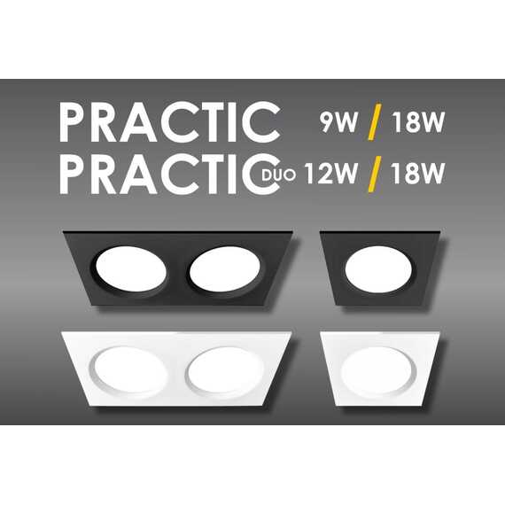 LED Панель квадратная PRACTIC DUO Черная, 18W, 4200K. 120*220