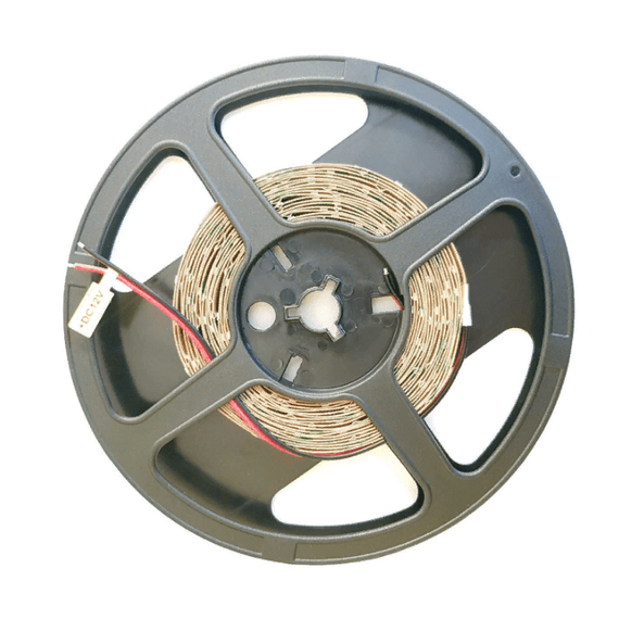 LED лента теплого белого цвета свечения имеет белую подложку. На одной стороне ленты находится двухсторонний скотч, благодаря которому её легко прикрепить к чистой, предварительно обезжиренной поверхности.