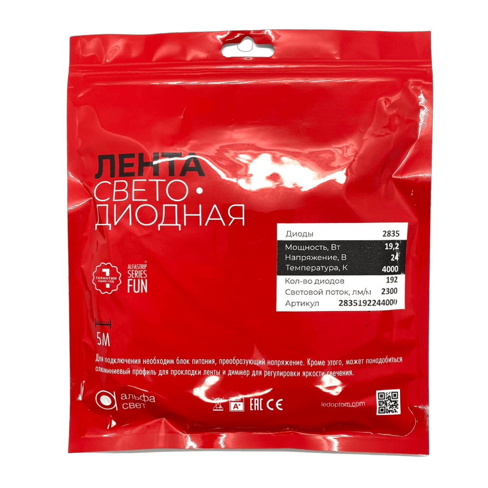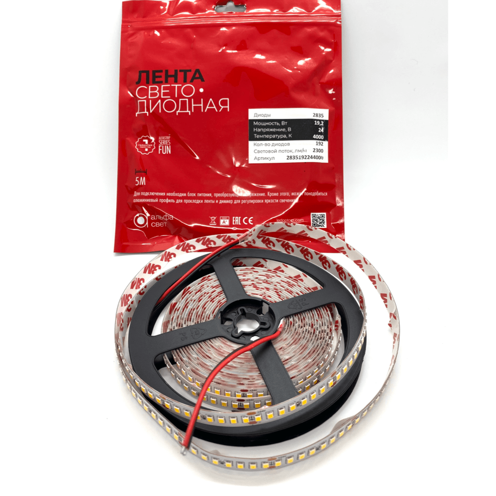 Лента светод. ALFA 3M, 19.2W/24V/4000K/192led/2300lm (5 м.)