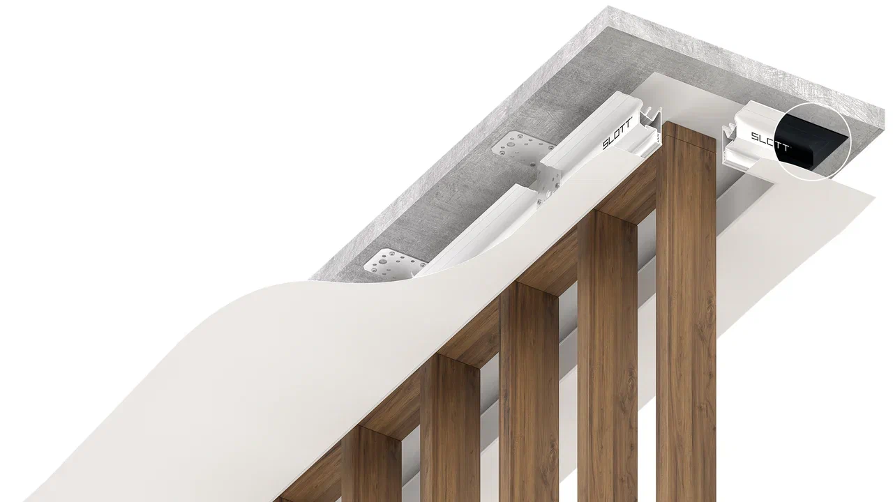 Идеальная гладкость и ровность линий, чёткость и лаконичность особенно ценятся перфекционистами и всеми, кто любит порядок и гармонию. Система Slott создаёт неповторимую элегантность в интерьерах жилых и офисных помещений. Профиль поставляется в комплекте с демпфером.