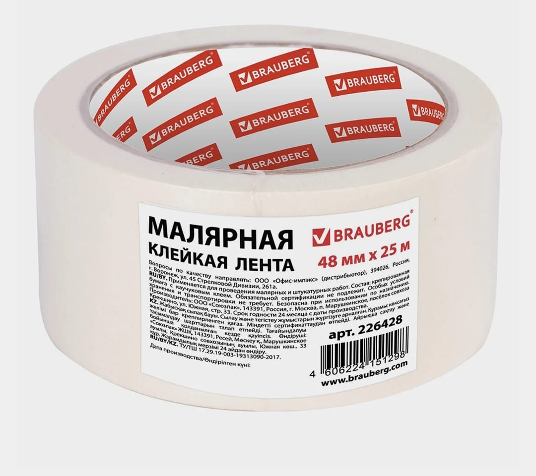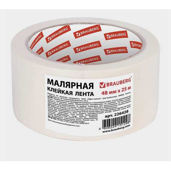 Малярная клейкая лента BRAUBERG на бумажной основе находит широкое применение при проведении штукатурных и лакокрасочных работ. Изготовлена из крепированной бумаги. Малярная клейкая лента легко удаляется с поверхности, не оставляя следов. На поверхности ленты можно делать надписи. Легко отрывается без использования ножниц. Клеевой слой - натуральный каучук на основе растворителя. Малярная лента влагостойкая, обеспечивает отличную адгезию с разными типами поверхности. Рабочая температура: от +10 °С до +60 °С. Упакована в термоусадочную пленку с этикеткой на каждом ролике.
