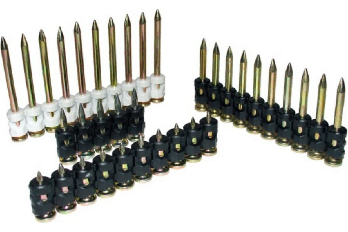 Дюбель-гвозди по бетону , металлу, кирпичу TOUA 2735smoothEG подходят для большинства газовых и пневматических монтажных пистолетов, широко используются в общестроительном монтаже: монтаж фанеры к бетону, монтаж тонких металлических и алюминиевых направляющих к бетону и кирпичу, монтаж профлиста к бетону, кирпичу и к немассивному стальному основанию толщиной до 4-5 мм. Так же применяются для пристрелки направляющих ГКЛ, штукатурной сетки и инженерных систем.