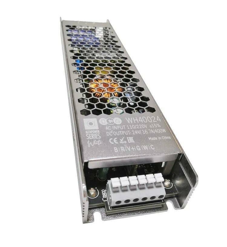 Блок питания ALFA WHITE 300W/24V с током 16.7А представляет собой надежное и мощное устройство для подачи электропитания в системы светодиодного освещения и другие электронные устройства. С общей мощностью 300 Вт и выходным напряжением 24 В, он обеспечивает стабильное и надежное питание для больших массивов светодиодных лент, модулей и других устройств.