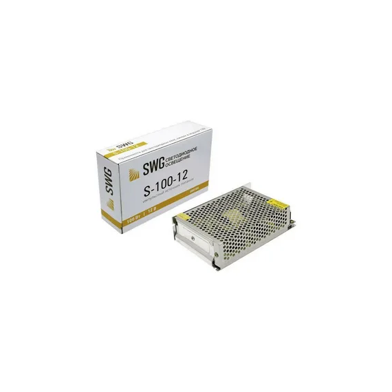 Блок питания SWG мощностью 100 Вт и напряжением 12 В предназначен для светодиодных лент и другого оборудования, работающего от постоянного напряжения 12 В. Он имеет сверхтонкий дизайн и компактные размеры, что позволяет легко установить его в различных местах. Его артикул — S-100-12.