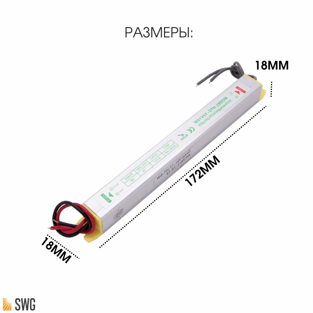 SWG Блоки питания сверхтонкий, 18W, 12V, L-18-12
