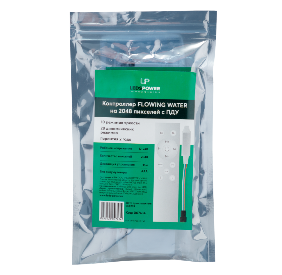Контроллер FLOWING WATER на 2048 пикселей с ПДУ (адресная - бегущая)