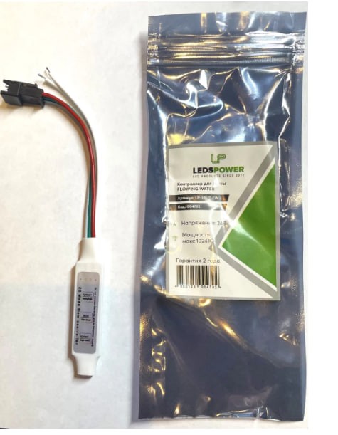 Контроллер FLOWING WATER способен управлять свечением светодиодной ленты с эффектом бегущей волны или текущей воды (например, СУЛ882 или СУЛ883). Он совместим с напряжением 12–24 вольта. Контроллер позволяет управлять до 1024 точками свечения. Расстояние, на котором он может работать, составляет до 15 метров. Доступно 10 различных режимов работы. С помощью кнопок на контроллере можно регулировать яркость свечения led-ленты, скорость и выбирать разные динамические режимы работы. Источник: https://uyutel.com/p/133873620...